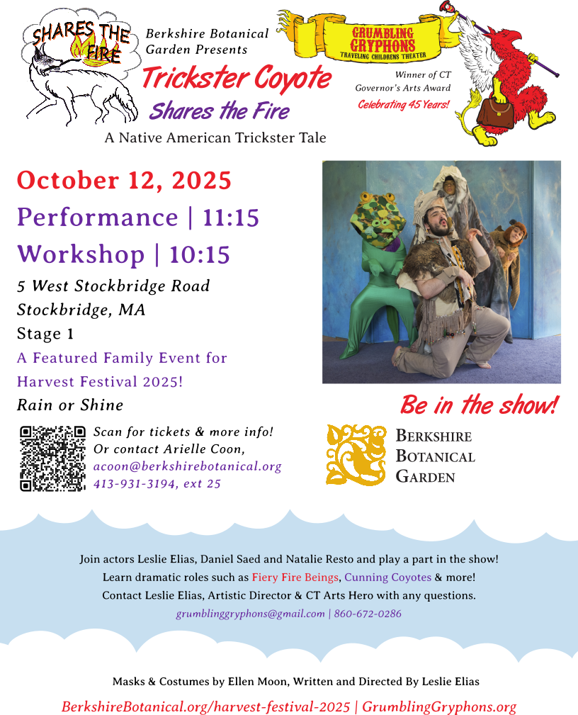 Grumbling Gryphons Traveling Children's Theater (winner of the 2003 Connecticut Governor’s Arts Award) was founded in 1980 and celebrates 45 years of bringing quality performances and educational workshops to audiences throughout the world. Grumbling Gryphons is a 501(c)(3) nonprofit organization.